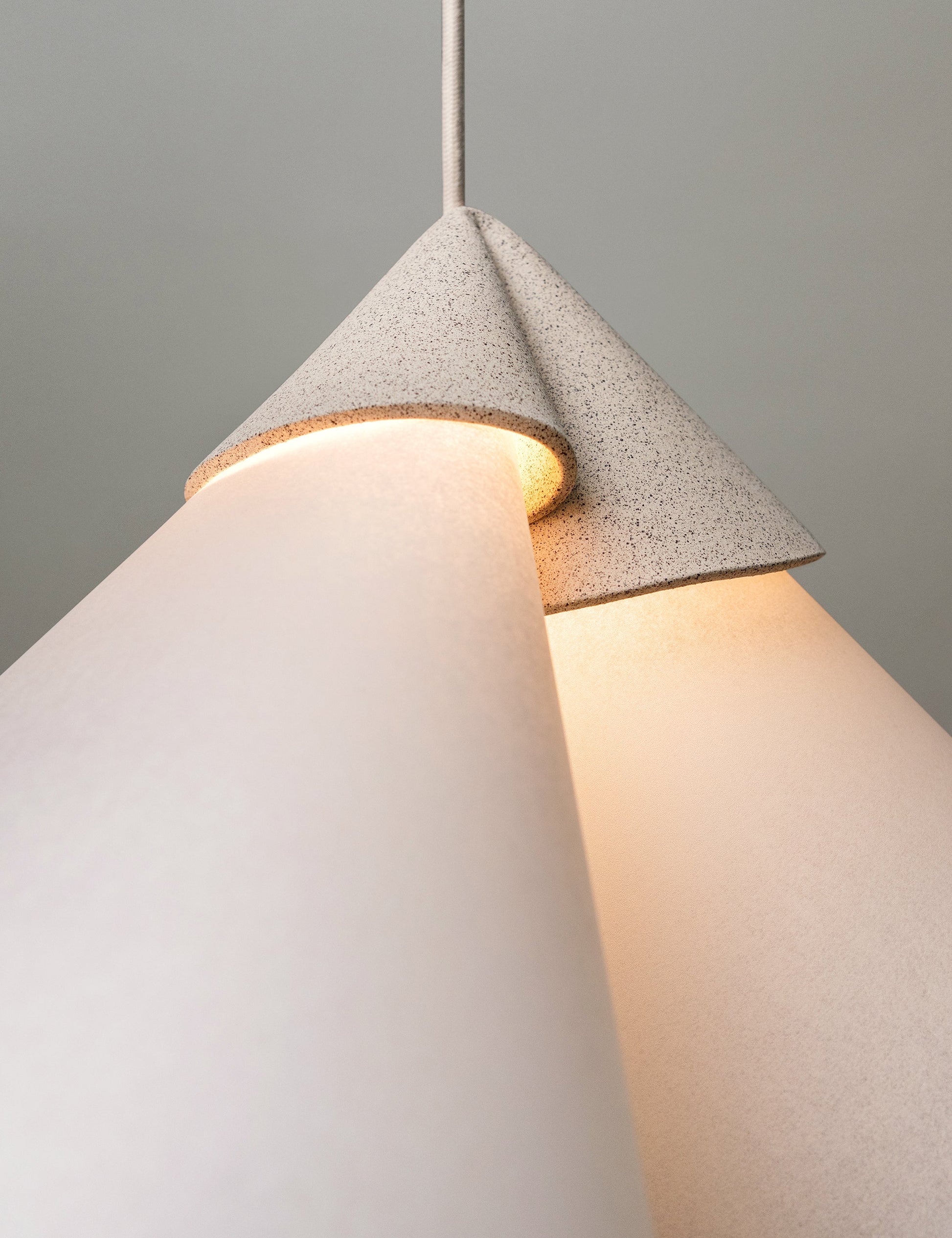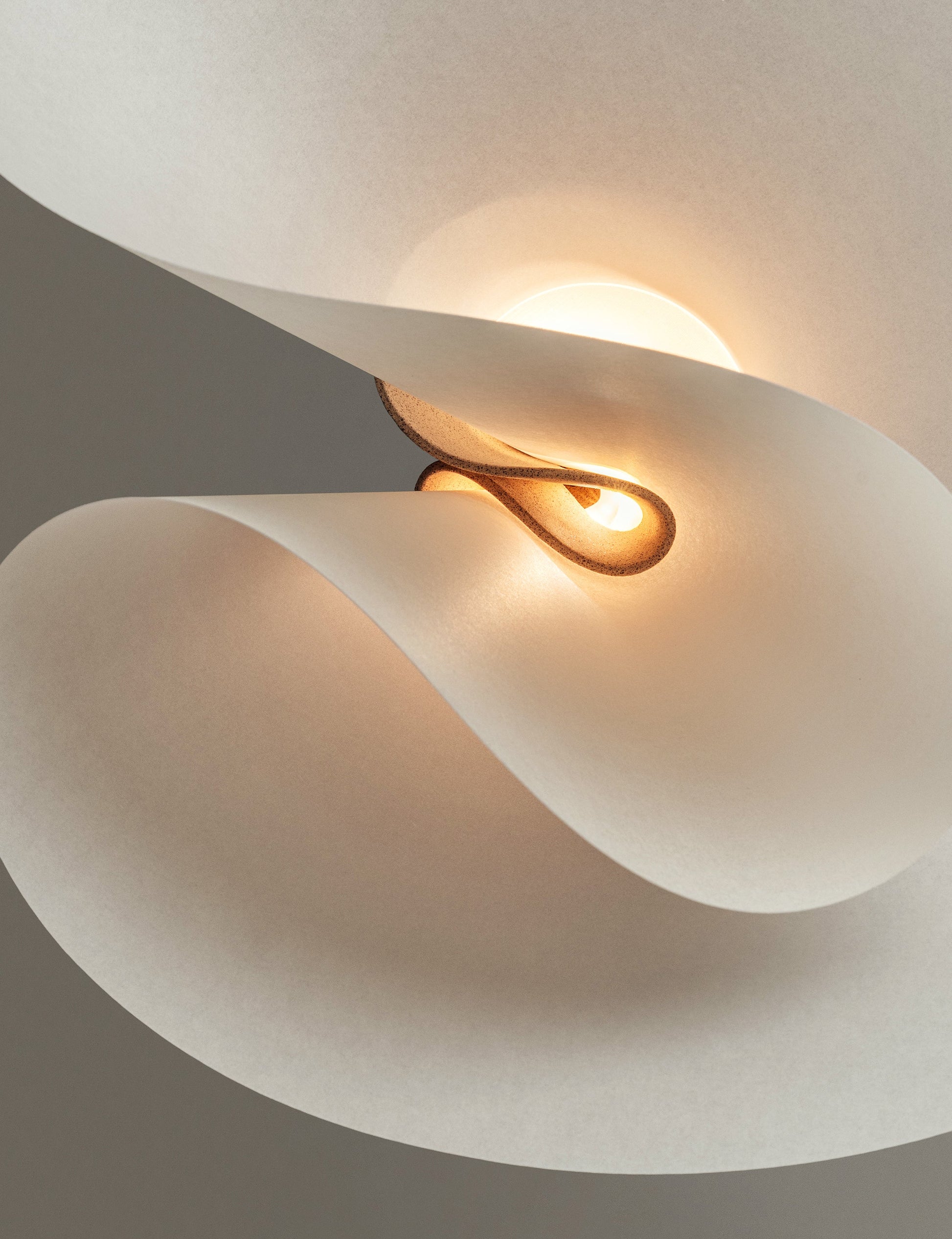 La céramique en grès cérame délicatement pliée ancre le design et dissimule l'éclairage.