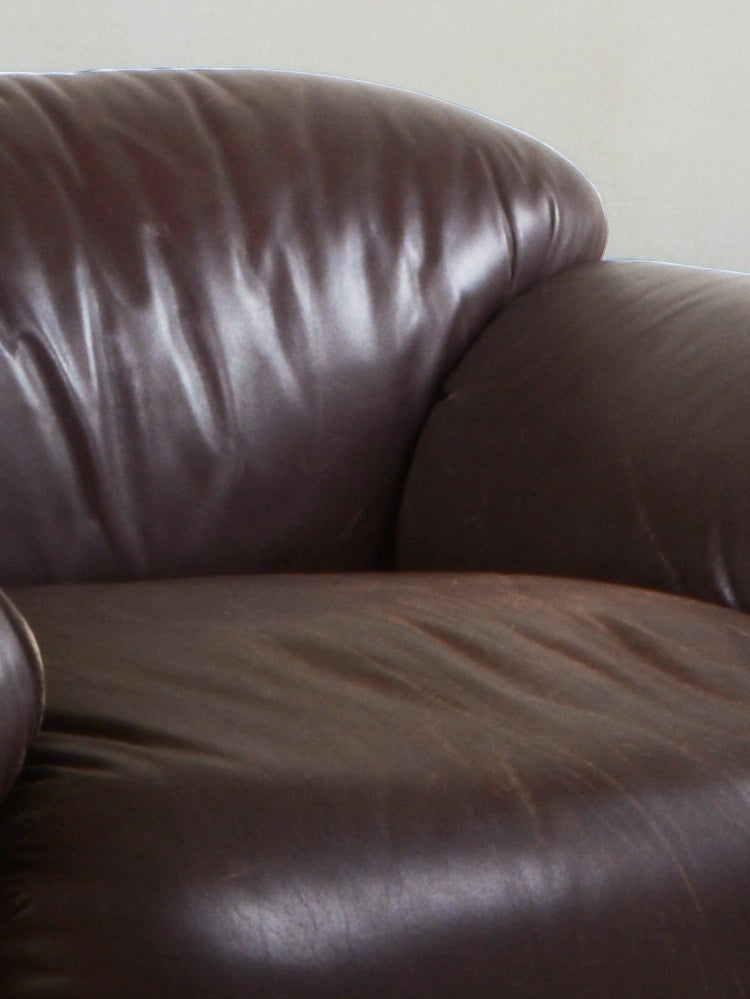 Sink into the plush indulgence of a vintage Italian leather armchair