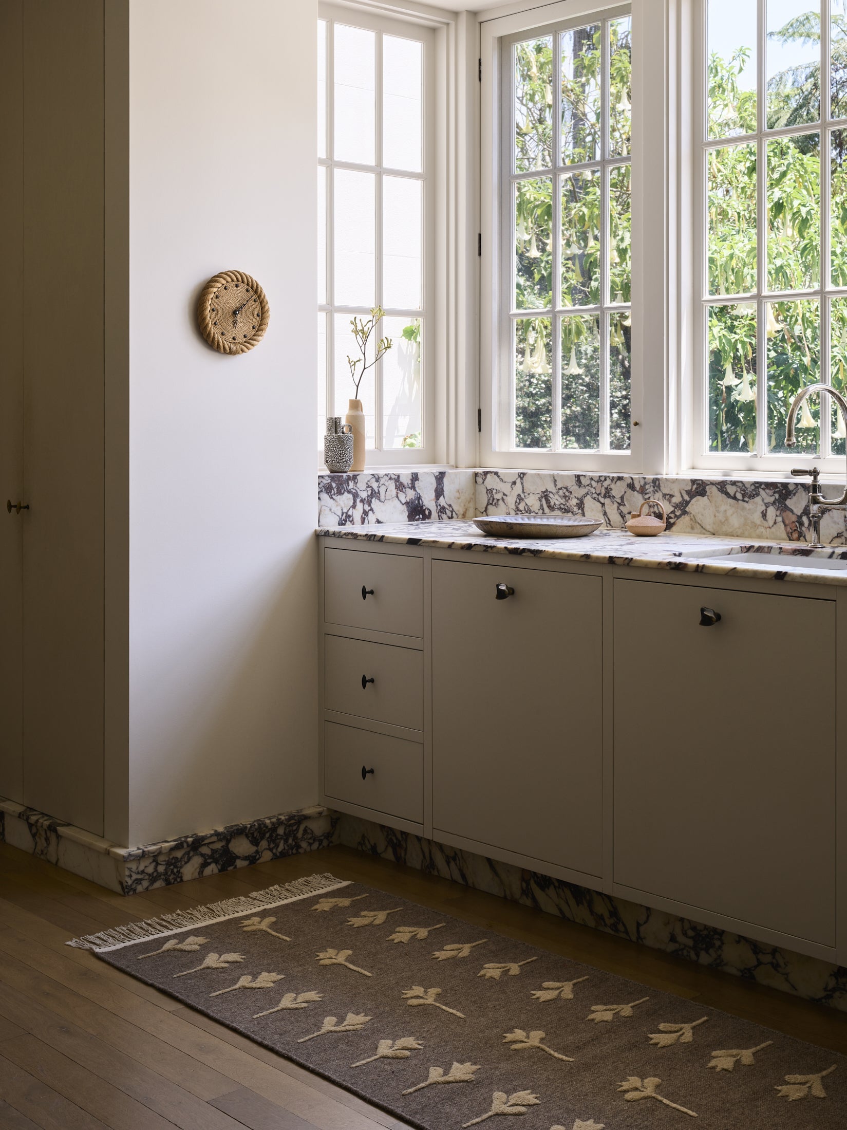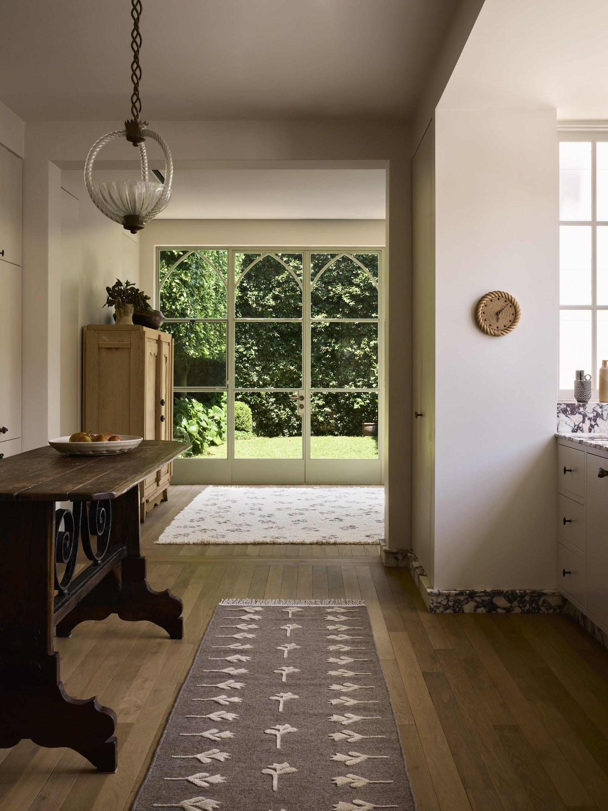 Hand-knotted and woven from a blend of 85% wool and 15% cotton