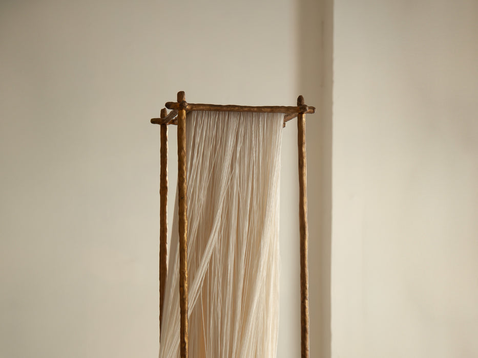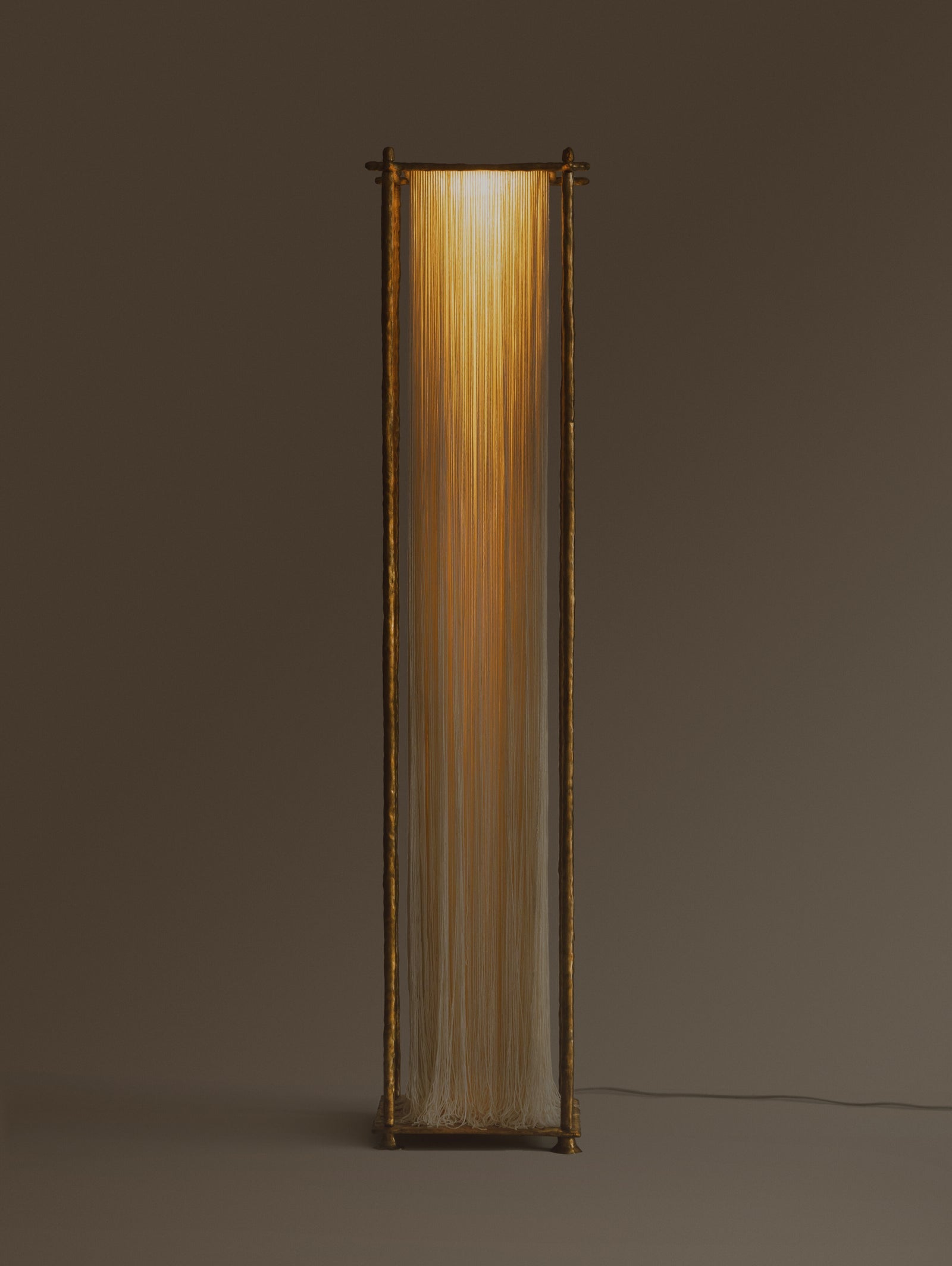 Sculptural sophisticated is balanced with inviting warmth in the impeccable Ito modern floor lamp. Its structured profile is crafted with rich cast brass that shows off subtle texture and dimension and complemented with the ethereal softness and warmth of flowing cotton. Light filters through to create an inviting glow, perfect for a refined but relaxed sitting area.
