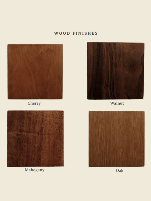 Pictured in mahogany with an oil finish with hand-glazed tiles in Rose