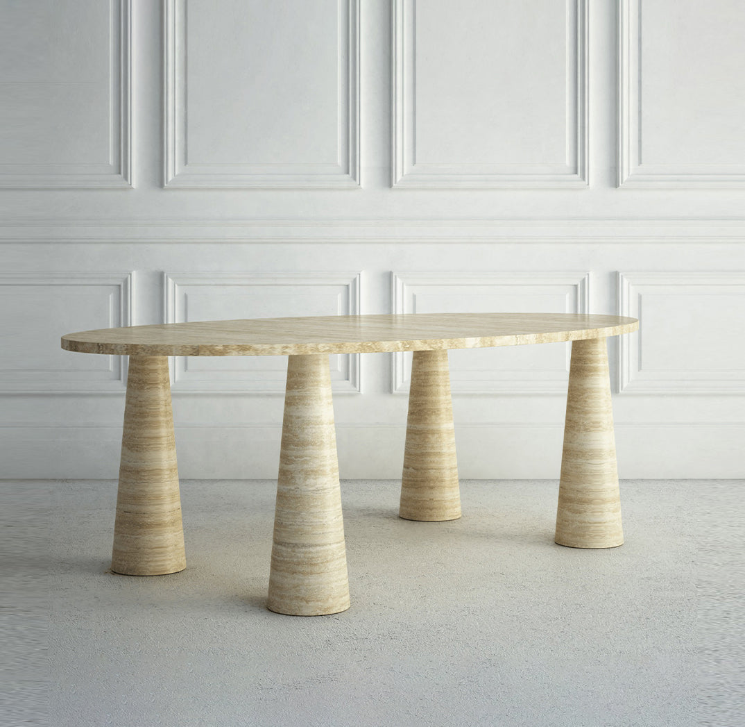 Due to the natural travertine stone, no two tables will be identical, with each unique in its veining and patterns