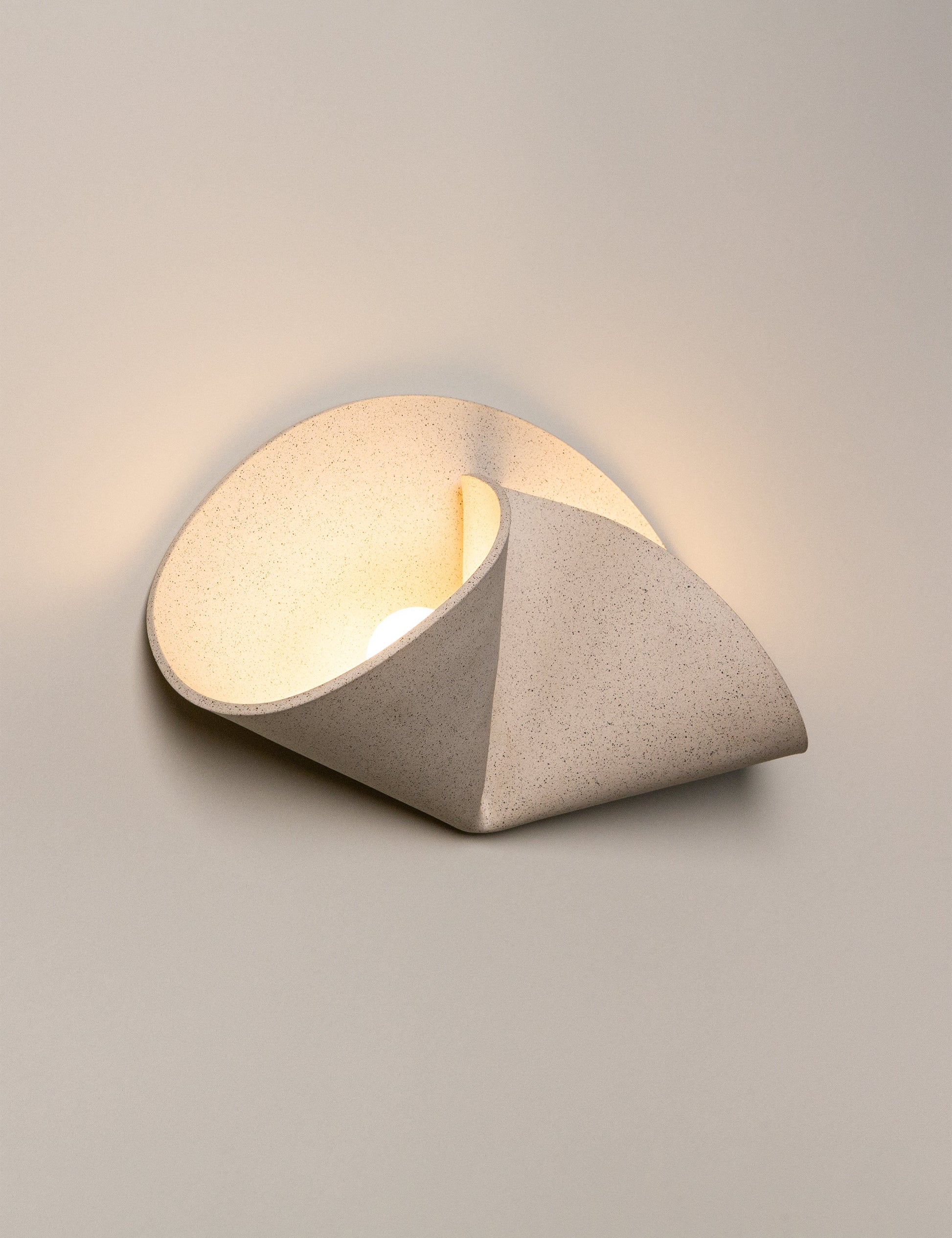 A modern ceramic wall sconce casts soft, glowing light across your space